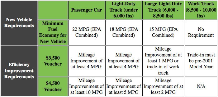 - Your trade-in vehicle must have a "new" combined city/highway fuel economy of 18 miles per gallon or less